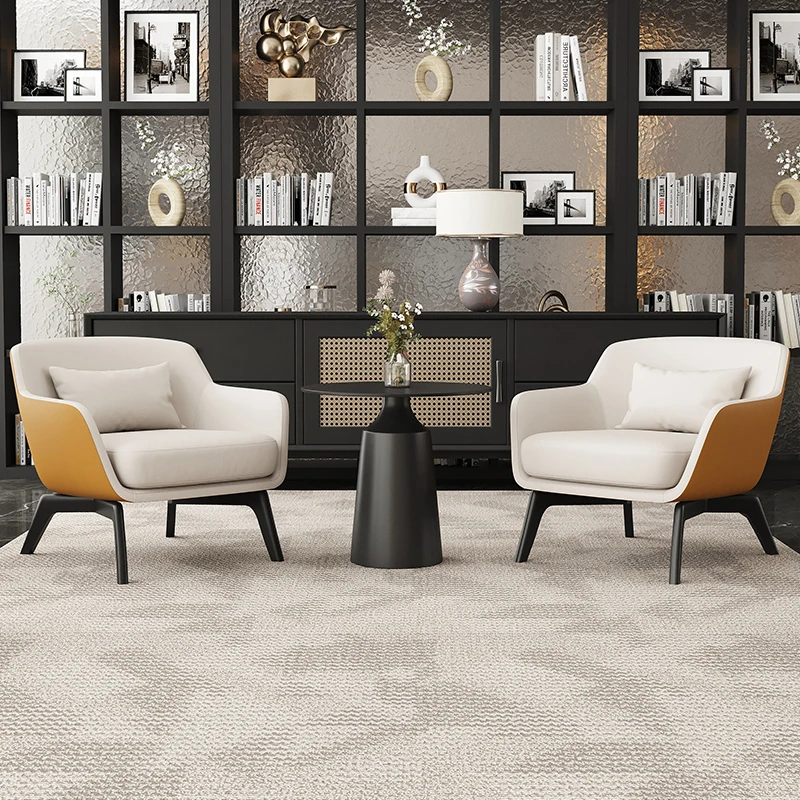 イタリアンスタイルの1人用ソファチェア - リラックスできるデザイン、4Sショールームや商談に最適!ホテルやバーにもぴったりなソファテーブルセット。おしゃれで快適な空間を演出します!