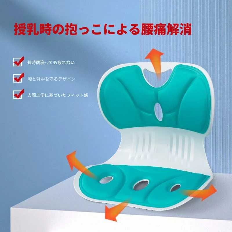 腰をしっかりサポート!美尻&姿勢矯正クッション一体型。オフィスでの長時間座りも楽々!快適な腰のクッションで、健康的な座り方を実現します。